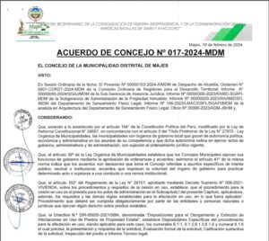 Acreditación municipal mediante Acuerdo de Concejo N° 017-2024-MDM para la administración del servicio